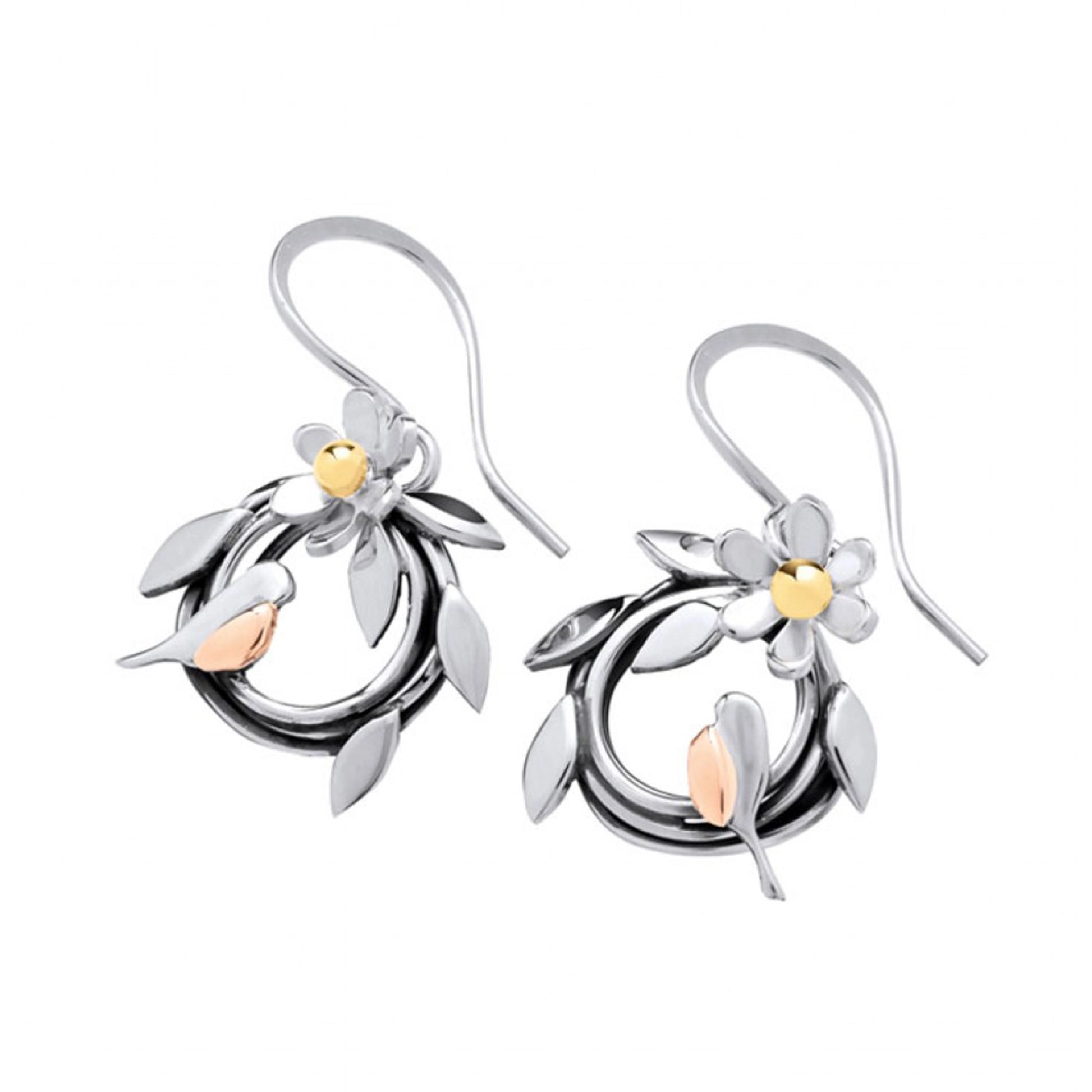 Part of the 'Ruben The Robin' festive collection by award-winning Scottish jewellery designer, Linda MacDonald, these earrings feature beautifully detailed and handcrafted silverwork shaped like a bird nests with florals and 9ct yellow gold details, finished with little robins with a 9ct rose gold breasts. This festive collection showcases the beloved red breasted robin. Not only is this design perfect for the festive seasons, but robins are said to appear when lost loved ones are near, making it a beautiful symbol of love and closeness.