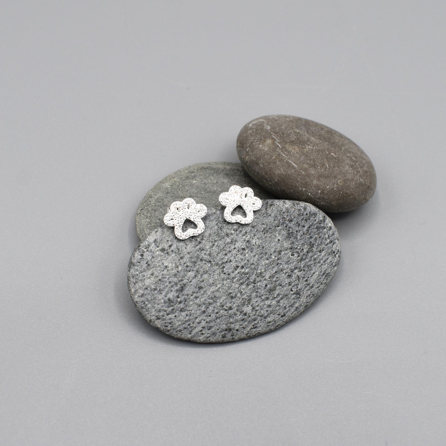 A little pair of paw print earrings set with sparkling cubic zirconia stones. Matching pendant is also available.