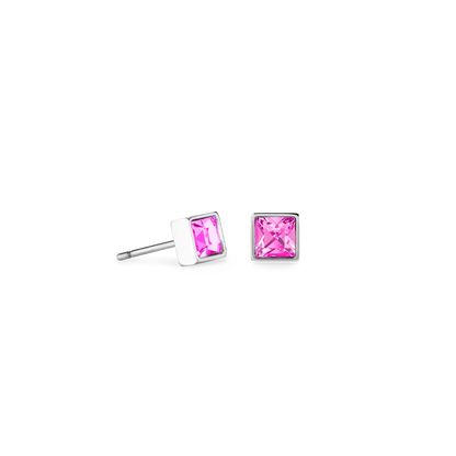 Coeur De Lion | Steel Rose Crystal Square Stud Earrings:
