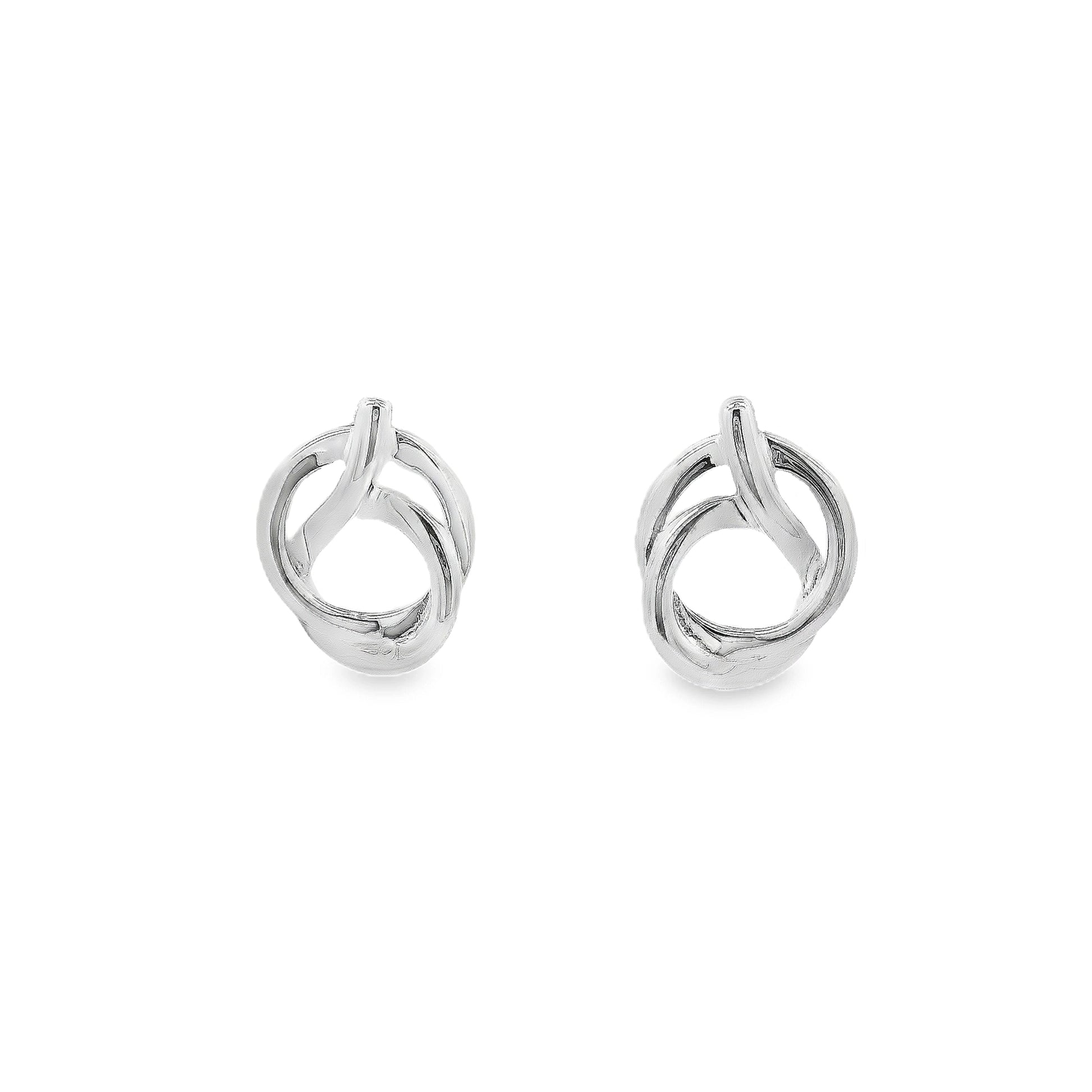 These modern silver stud earrings feature twisted knotted circle designs. Matching pendant is also available.