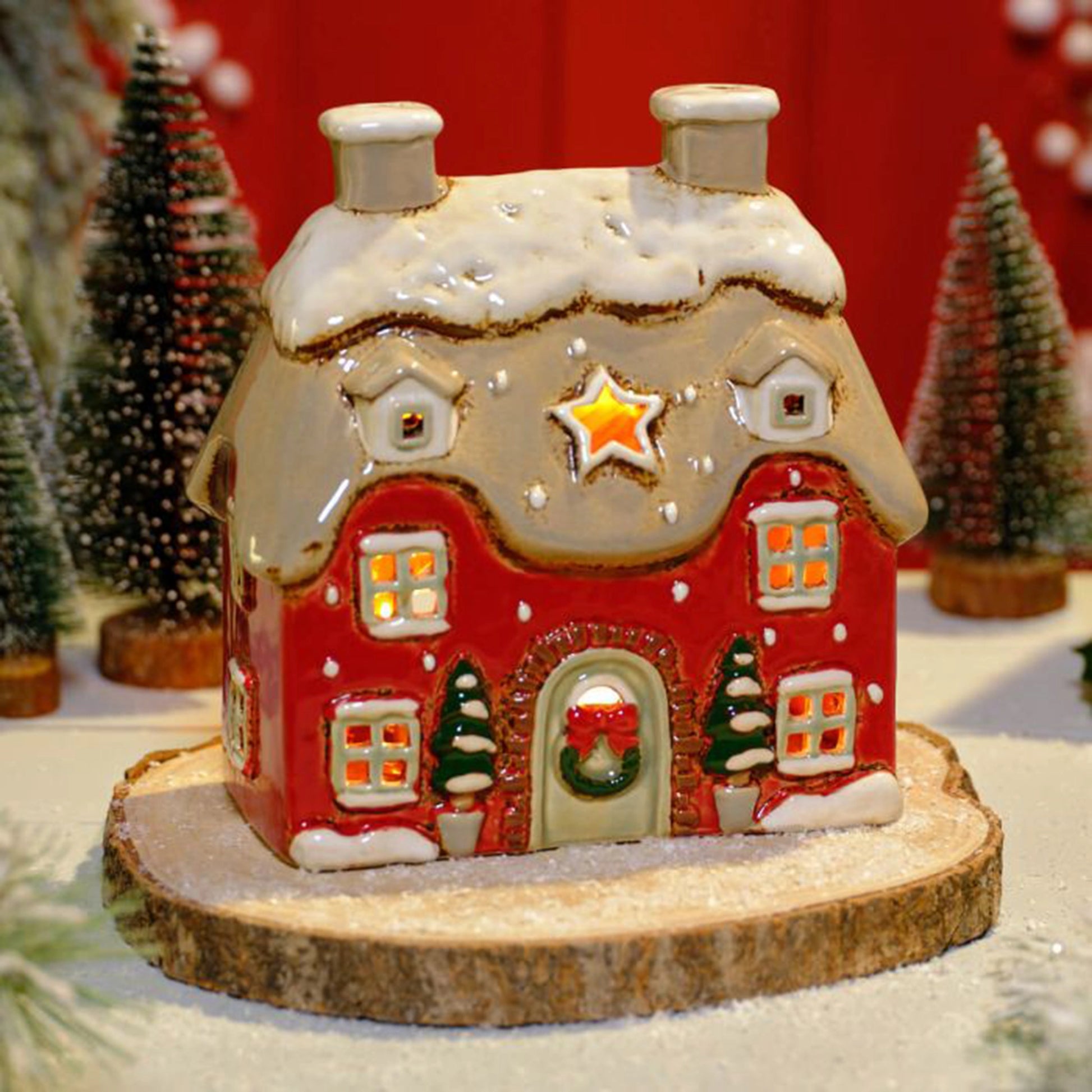 Langs | Red Christmas Thatched Cottage Tealight Holder: